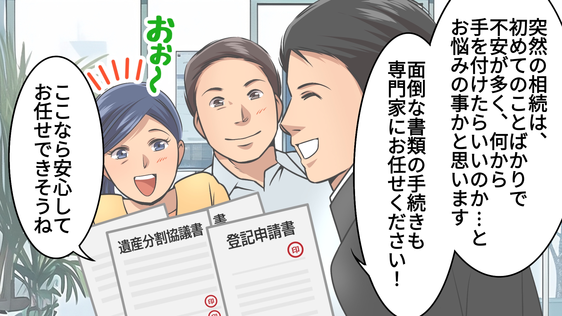 相続に関してのお悩みなら、どんなご相談でもじっくりと時間をかけ、寄り添いながら解決へと導きます。
